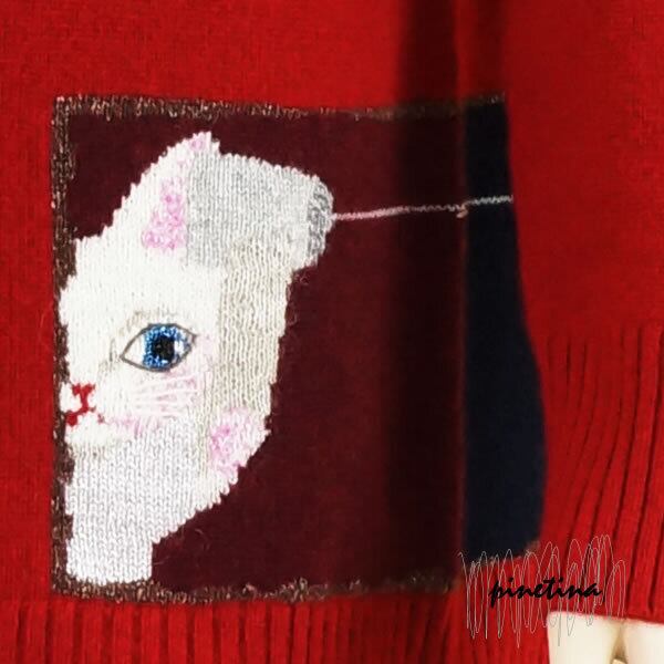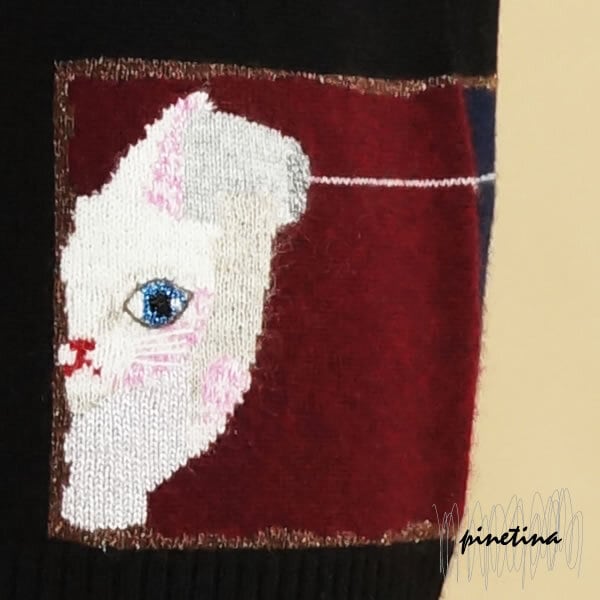 異なる質感の糸を使用してインターシャ(柄編み)を組んでいます。